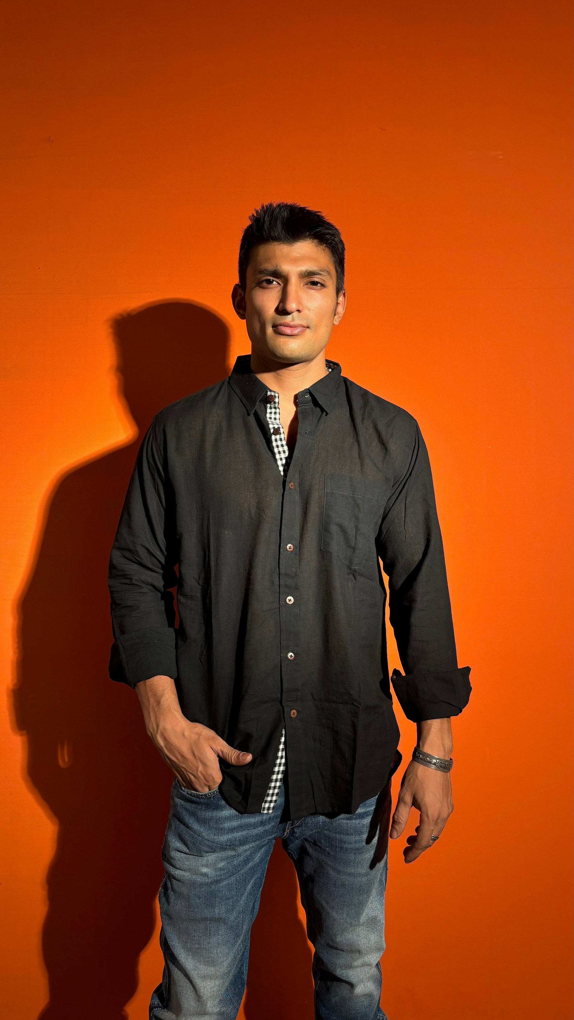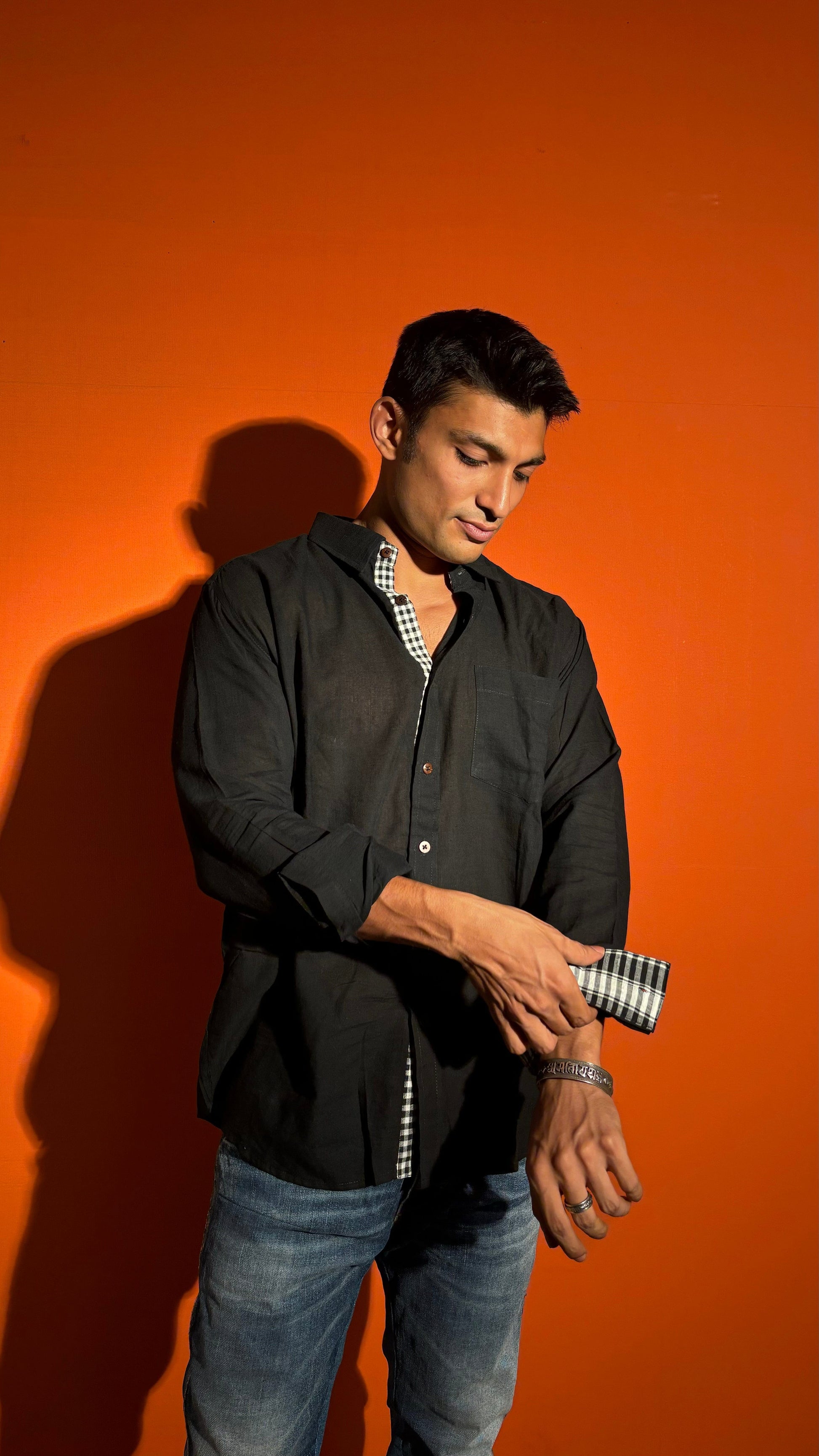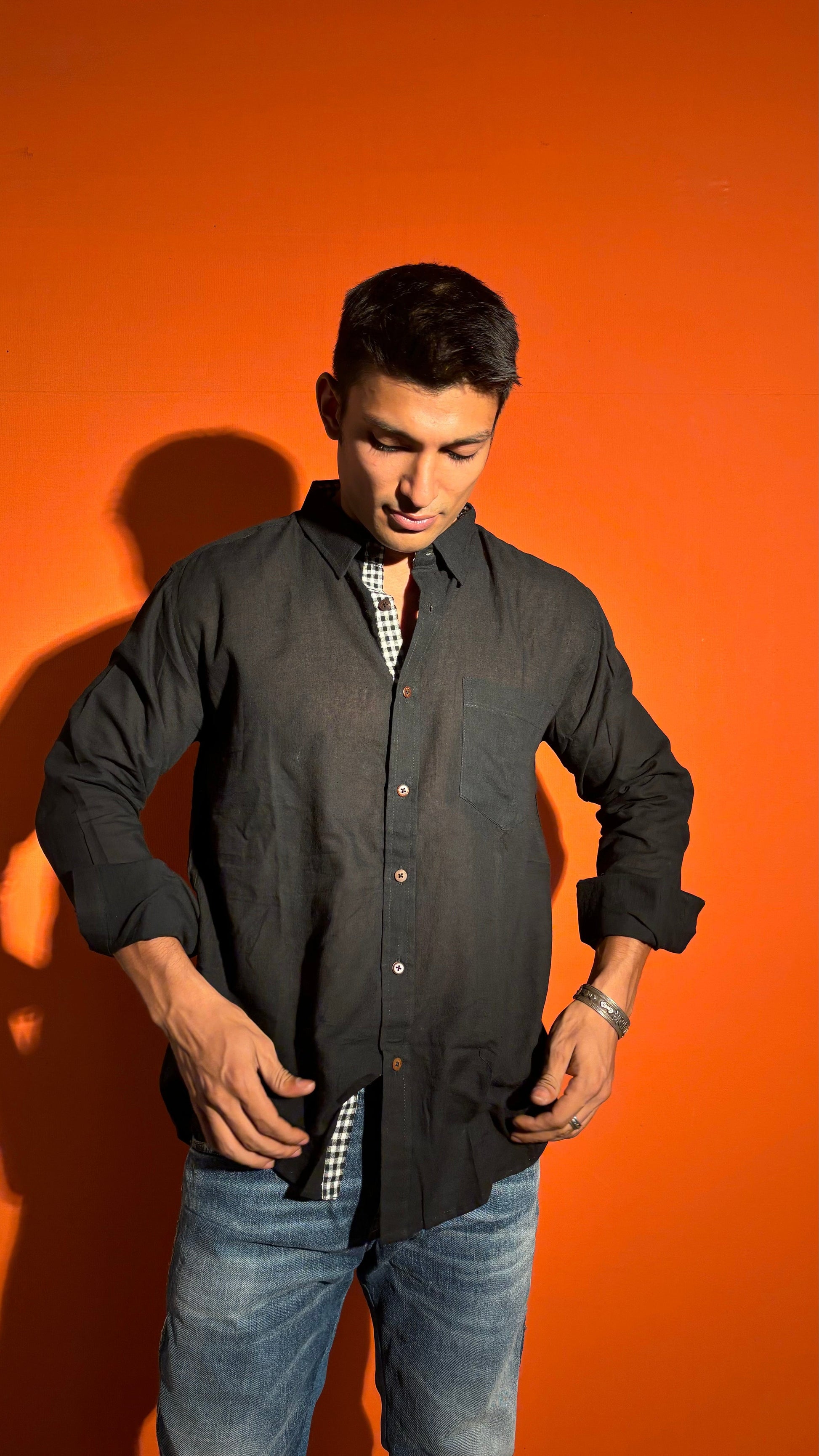 Wrap yourself up in luxurious comfort with our Black Cotton Stripe Shirt. Made from the softest cotton fabrics, this shirt is not only super absorbent and breathable, but also features a tasteful gamcha strip for a touch of sophistication. Elevate your wardrobe with this exclusive and stylish Full-sleeve shirt.