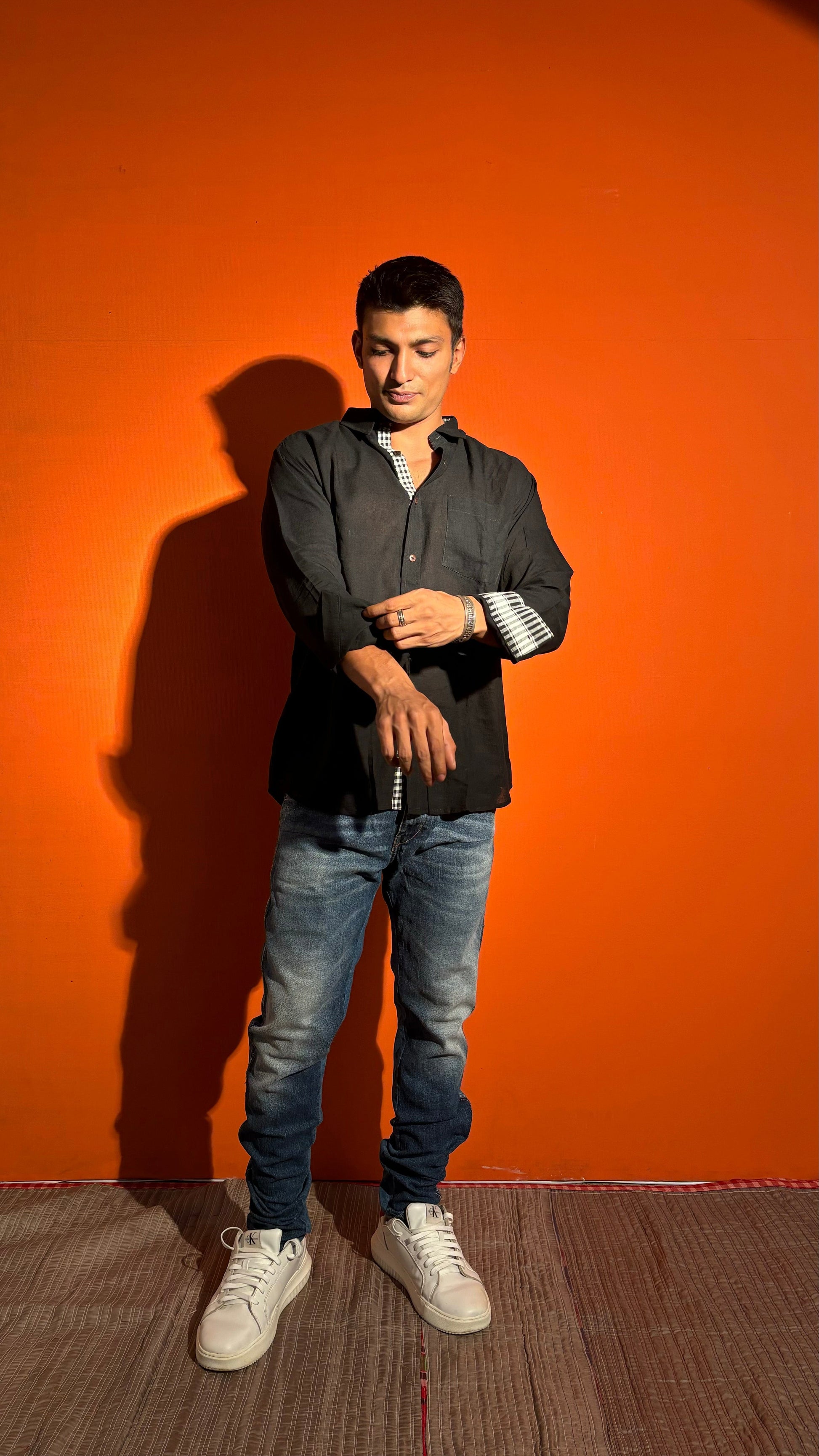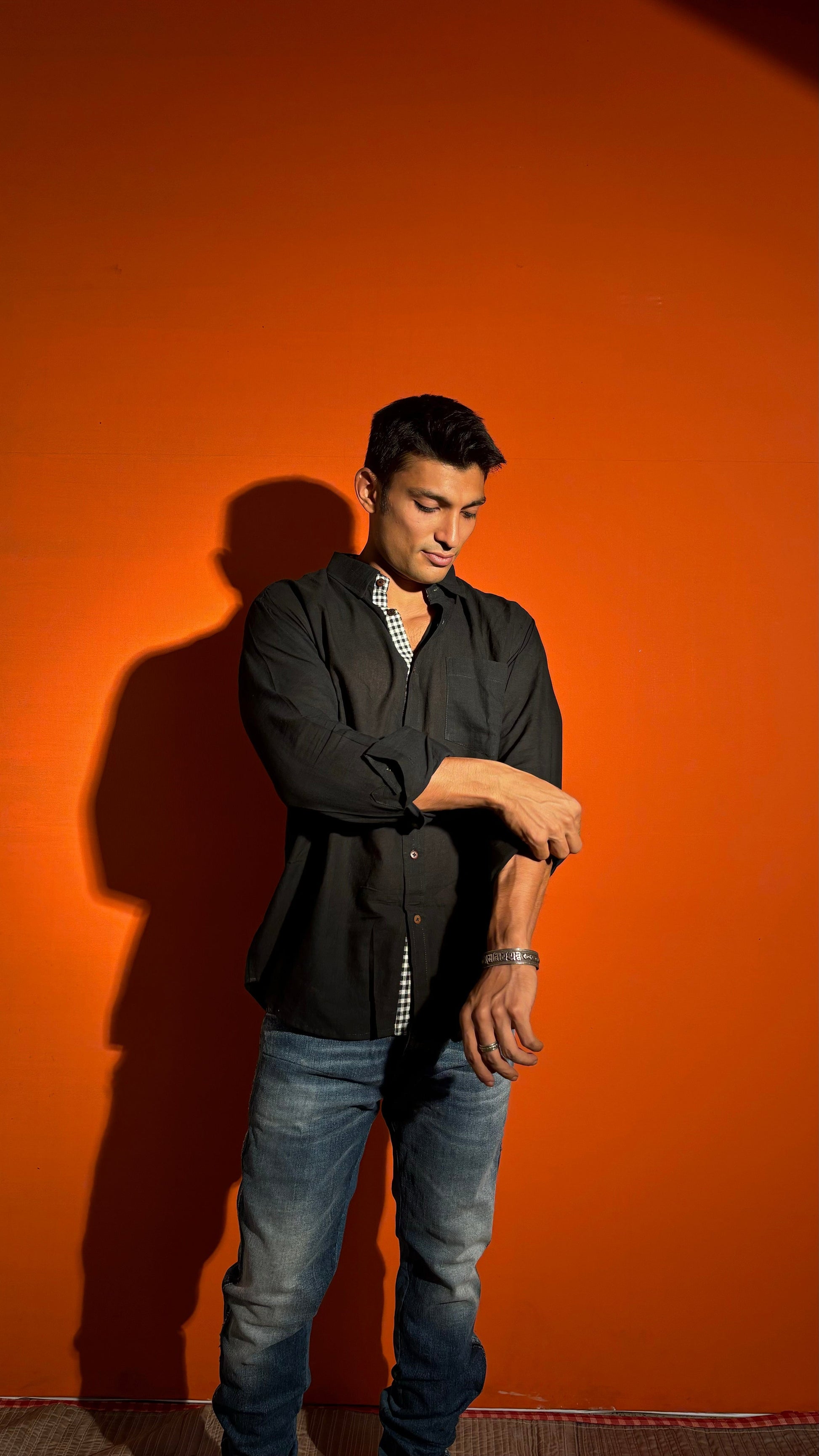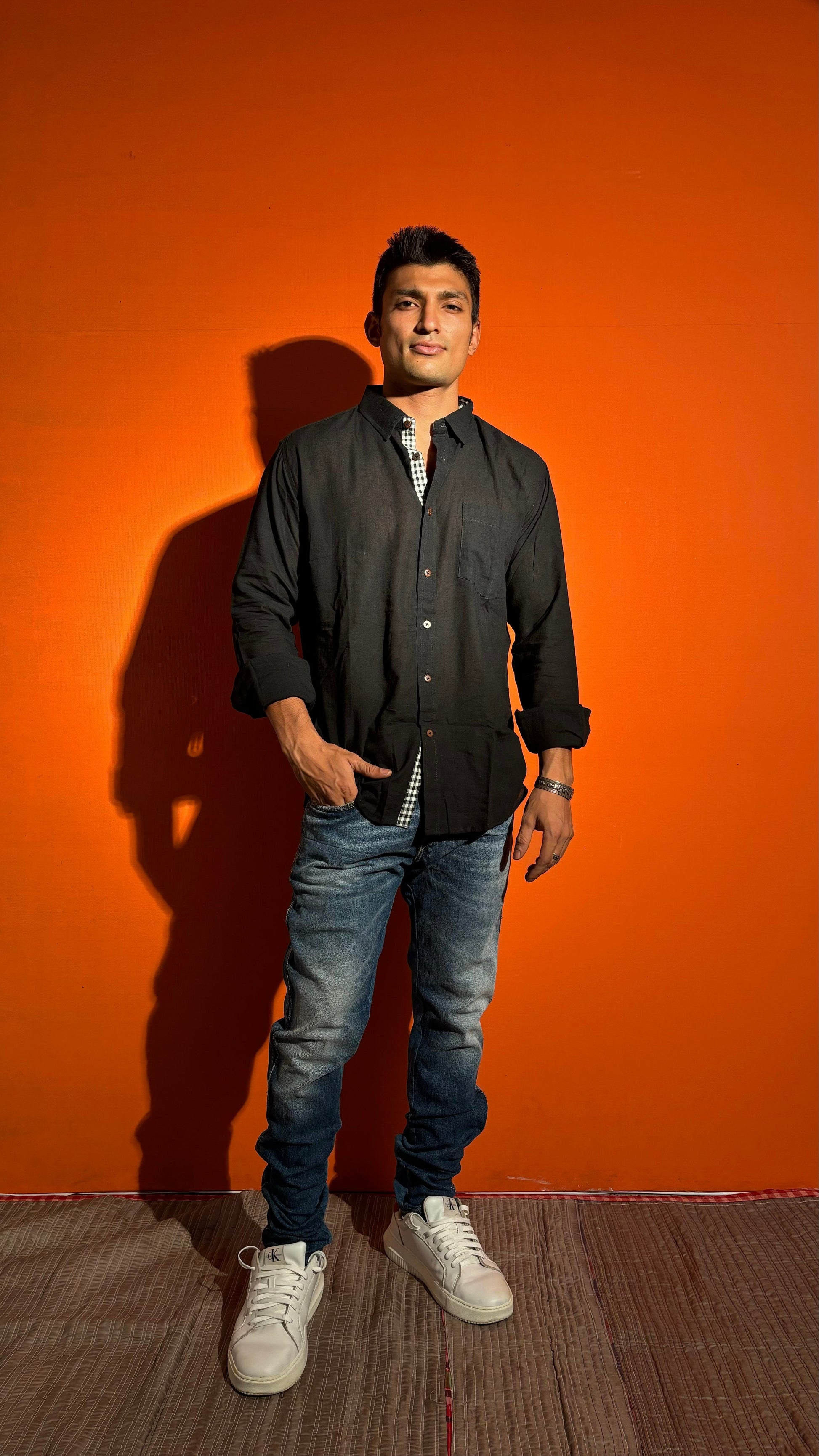 Wrap yourself up in luxurious comfort with our Black Cotton Stripe Shirt. Made from the softest cotton fabrics, this shirt is not only super absorbent and breathable, but also features a tasteful gamcha strip for a touch of sophistication. Elevate your wardrobe with this exclusive and stylish Full-sleeve shirt.