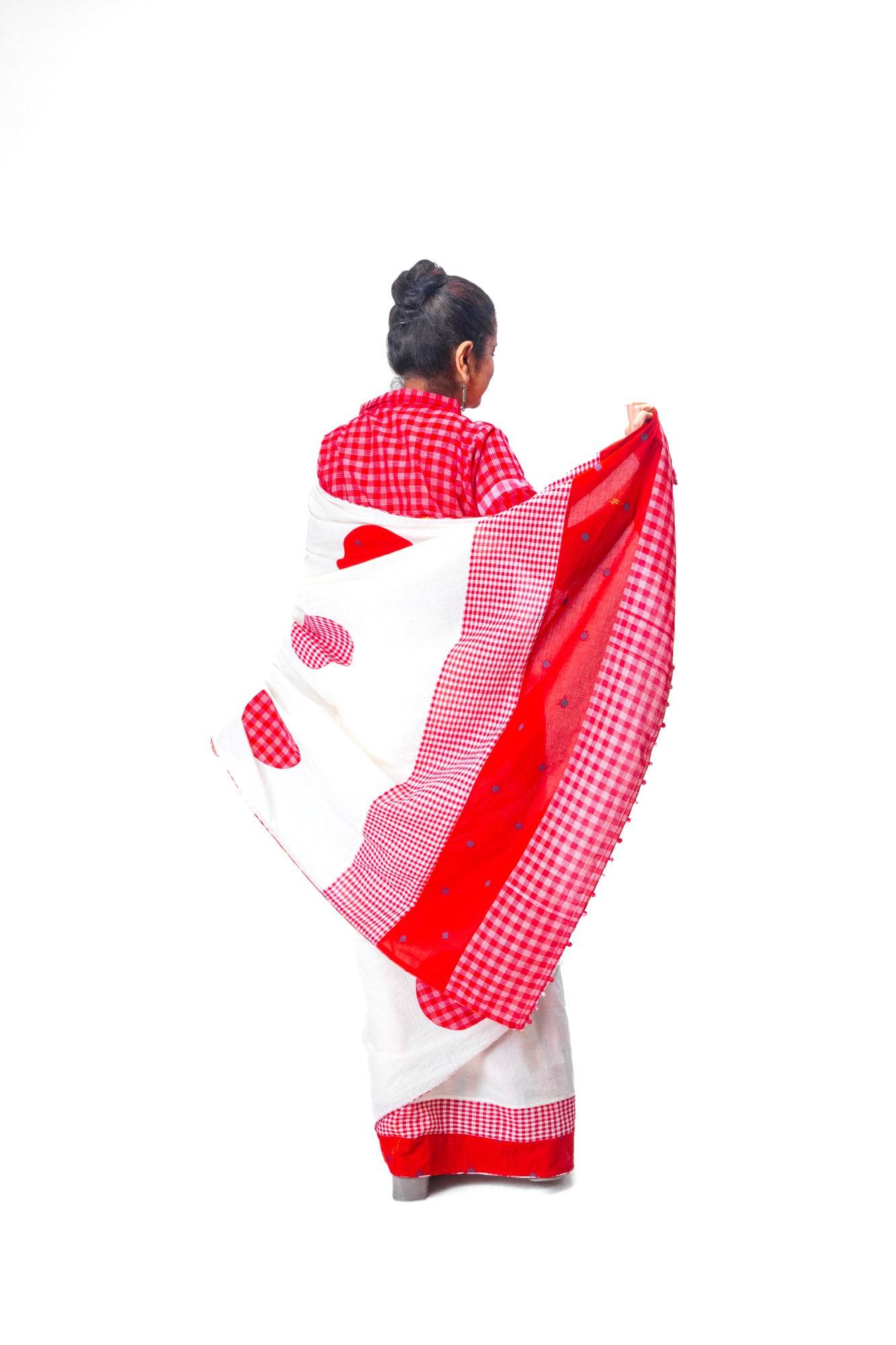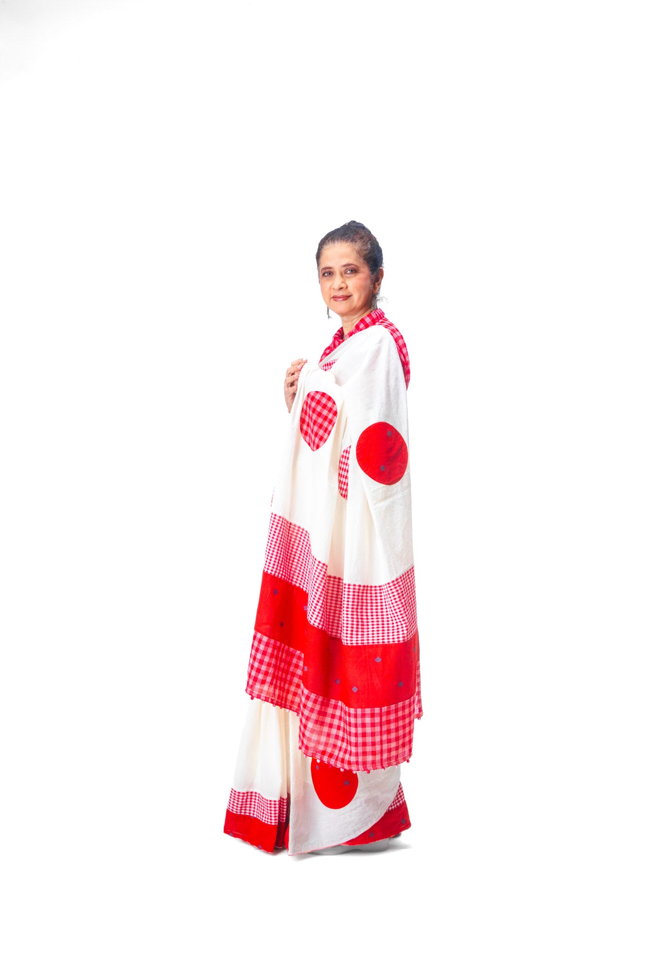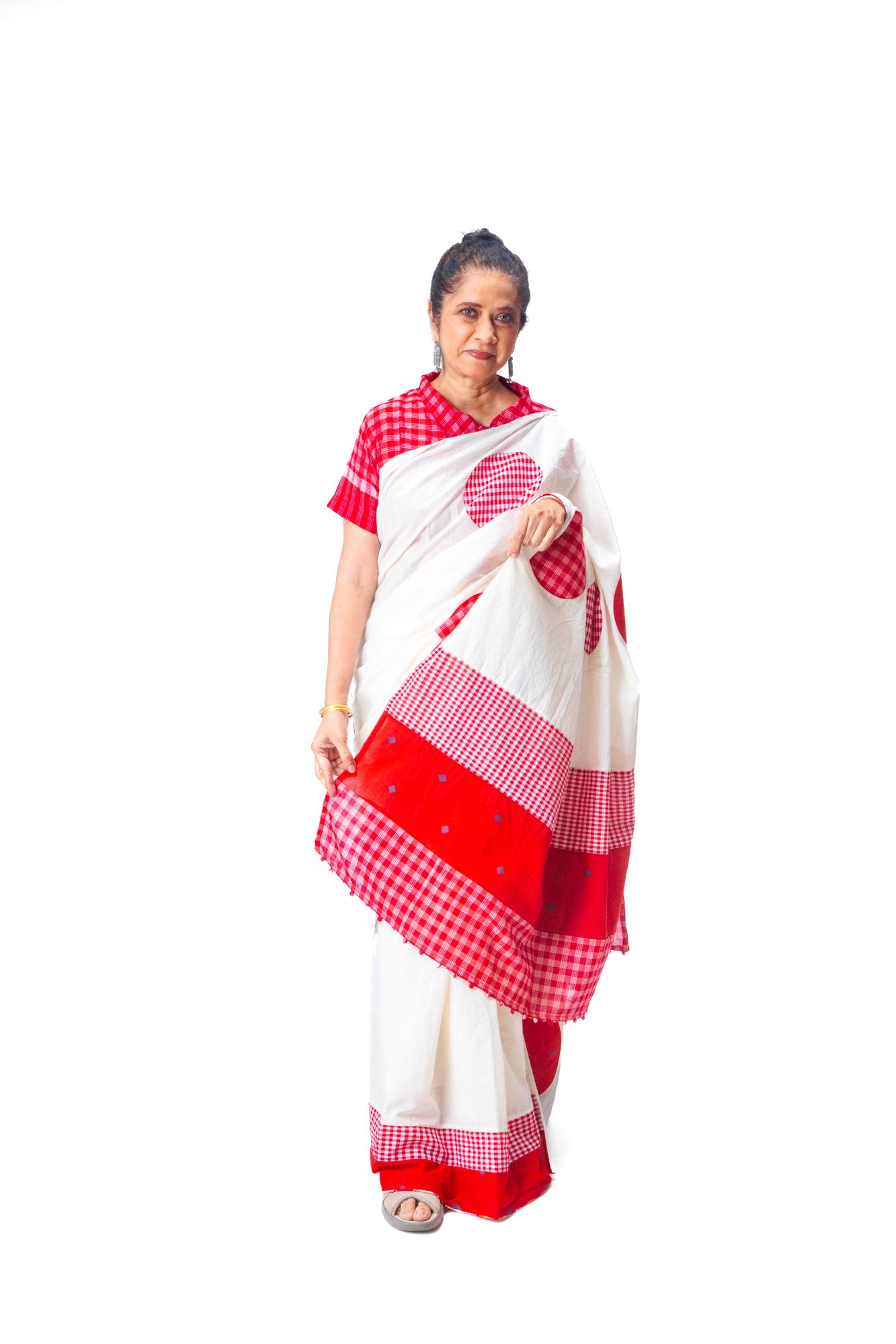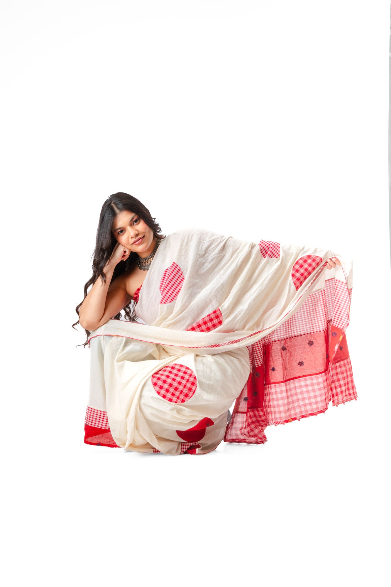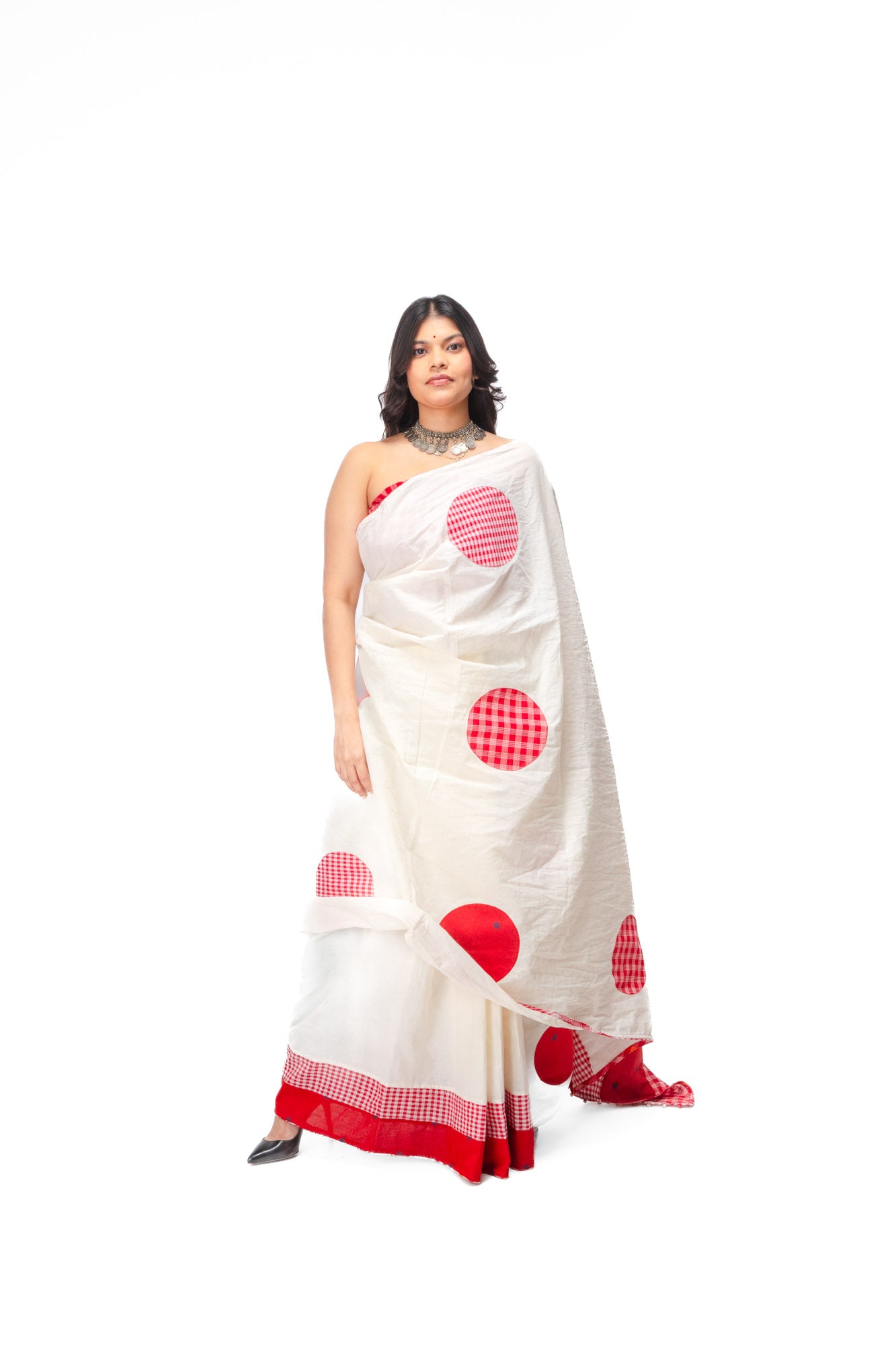 This Festive Polka Saree combines traditional charm with a timeless retro appeal. Made from 100% cotton, it offers a lightweight and breathable drape that ensures comfort throughout your celebrations. The classic red and white polka dot pattern adds a chic touch, while the bordered pallu enhances its festive elegance. Perfectly sized to standard saree dimensions, this saree is ideal for weddings, festivities, or any special occasion where you want to stand out with understated grace.