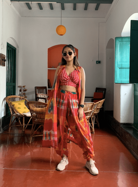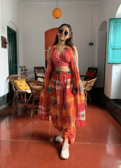 The set comes with 3 pieces - A dhoti pant, A Jacket and a Reversible Bustier. Wear them together or style them individually, you are free to create too many looks with the purchase of this set!