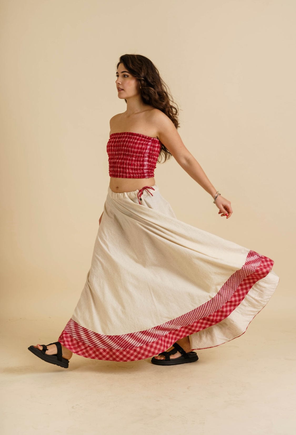 Twirl around in the comfort of our Ghera Skirt, made beautifully with Khadi Cotton and Gamcha.