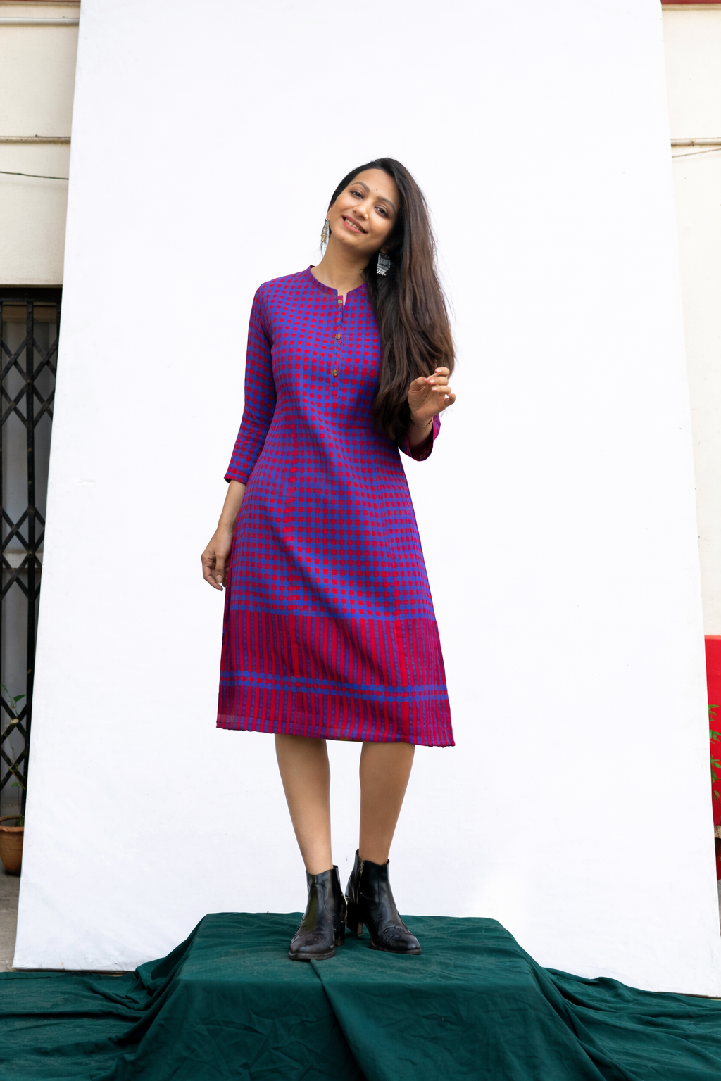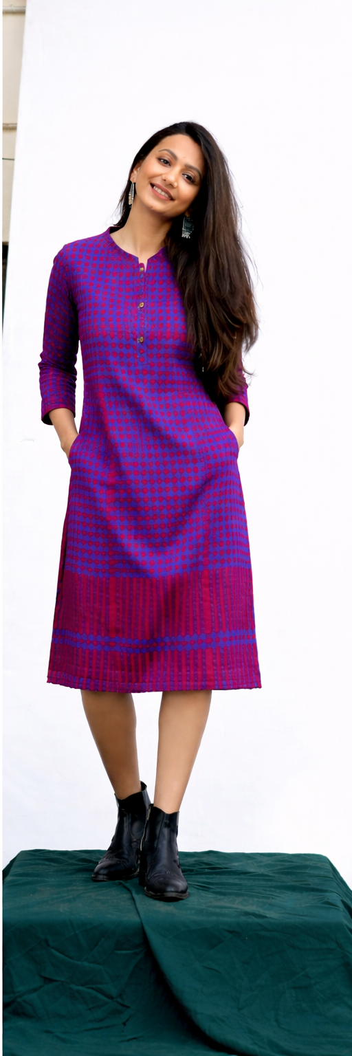 Versatile PURPLE tunic crafted from 100% cotton for all-day comfort. Featuring a relaxed 36-inch length that works beautifully as a dress or layered piece, this style includes practical side pockets, three-quarter sleeves, and a convenient three-button closure. Perfect for effortless, breathable wear in any season.