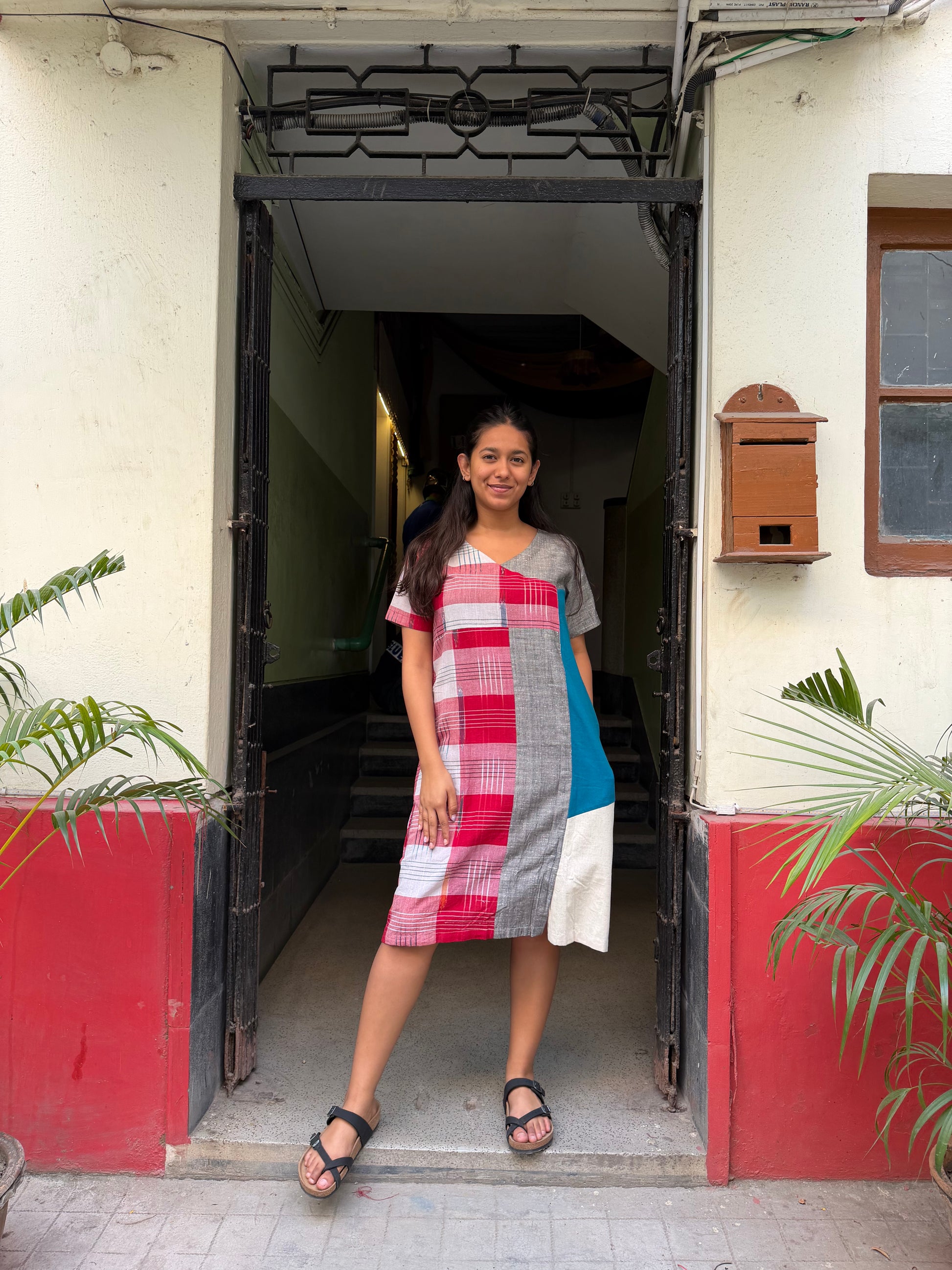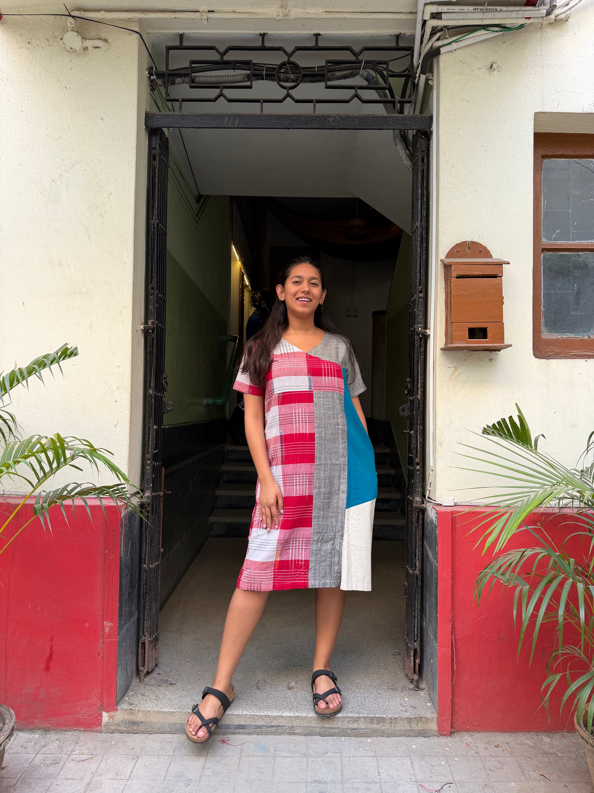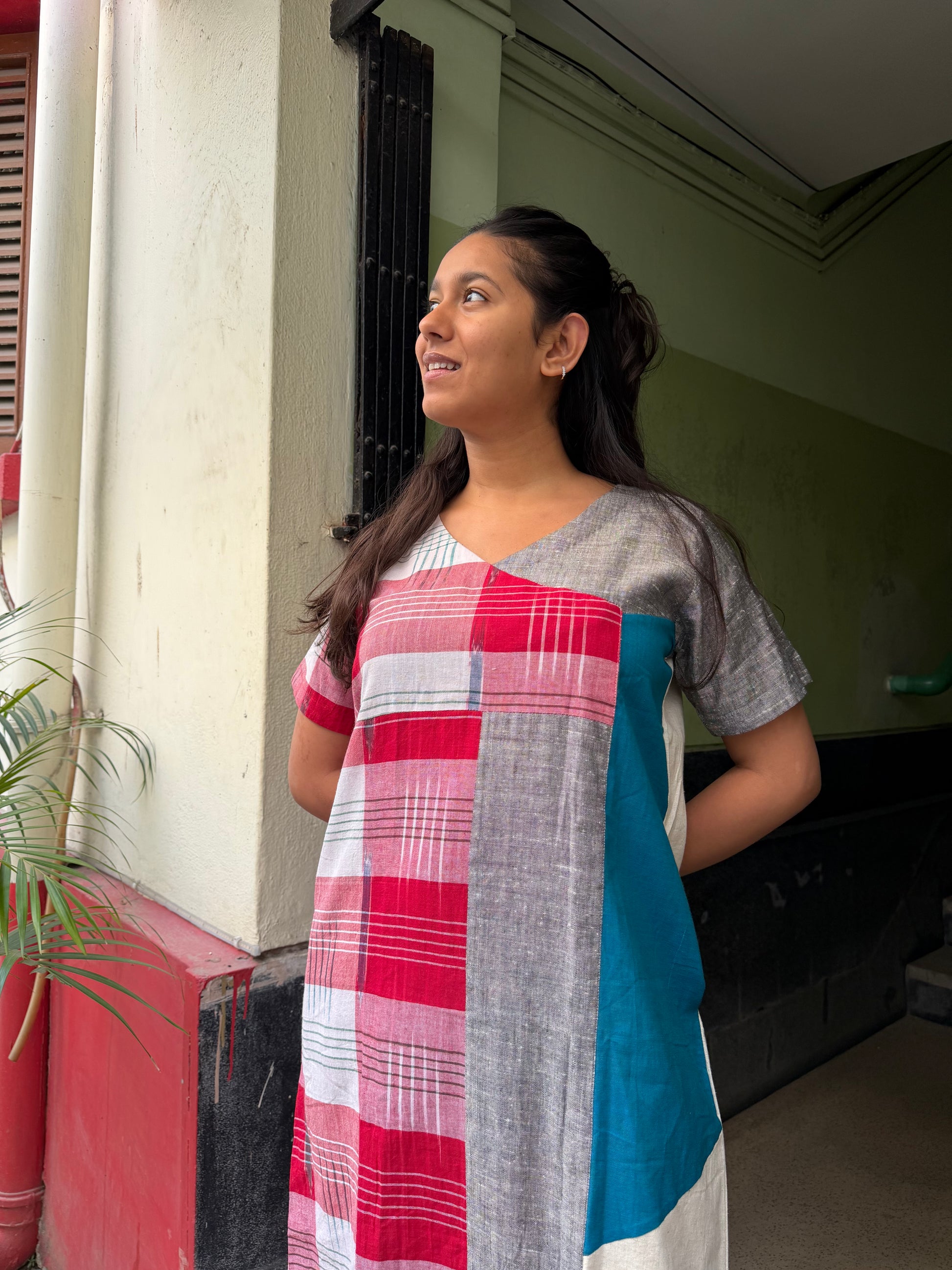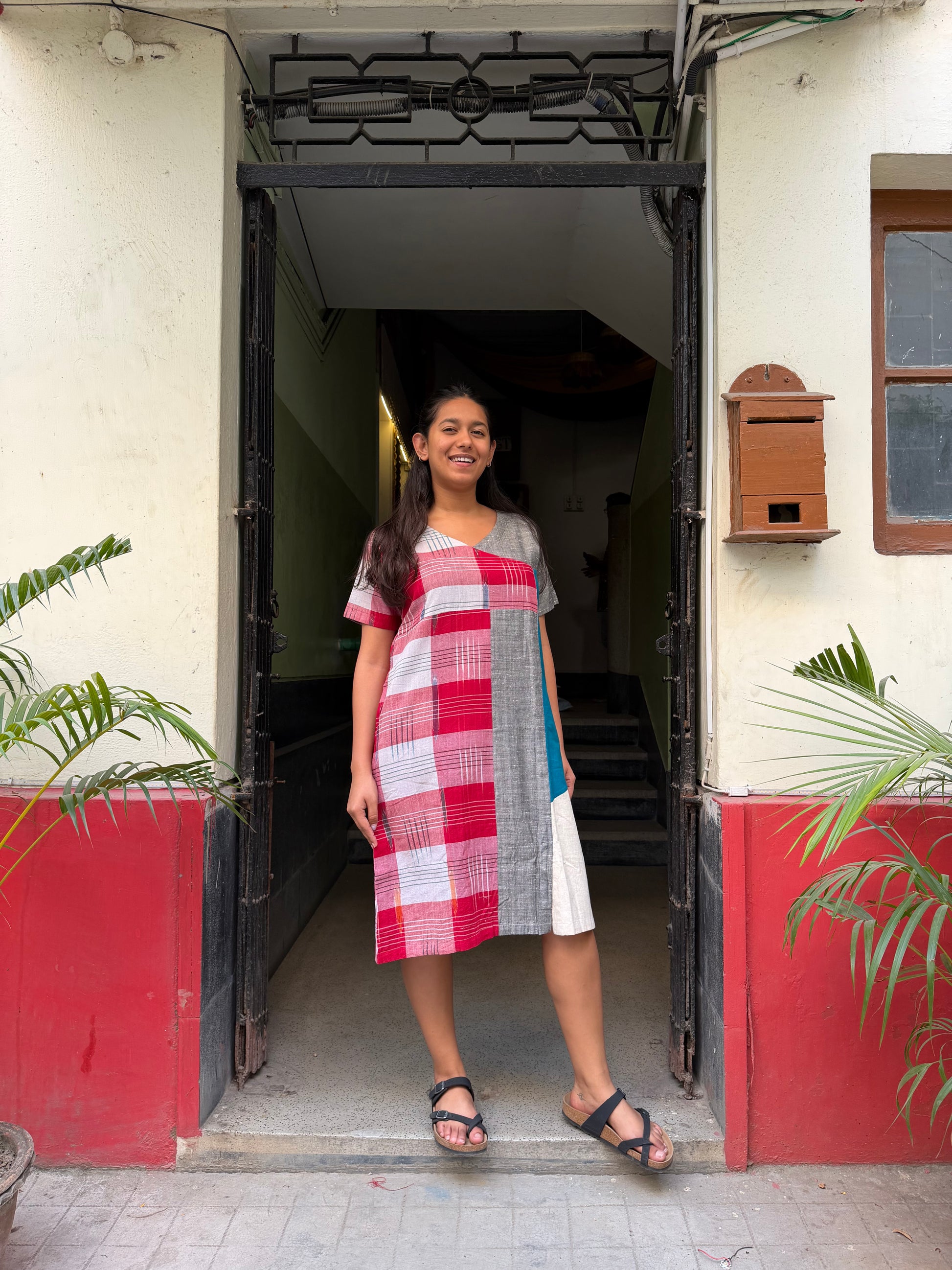 Indulge in the sophistication of the Scarlet Stride Dress. Designed with a flattering mid length of 40 inches and a striking V-neck, this dress boasts a unique colorplay to make a statement. Crafted from 100% cotton, it offers both style and comfort with convenient pockets and lightweight, fun fashion. Elevate your wardrobe with this must-have piece.