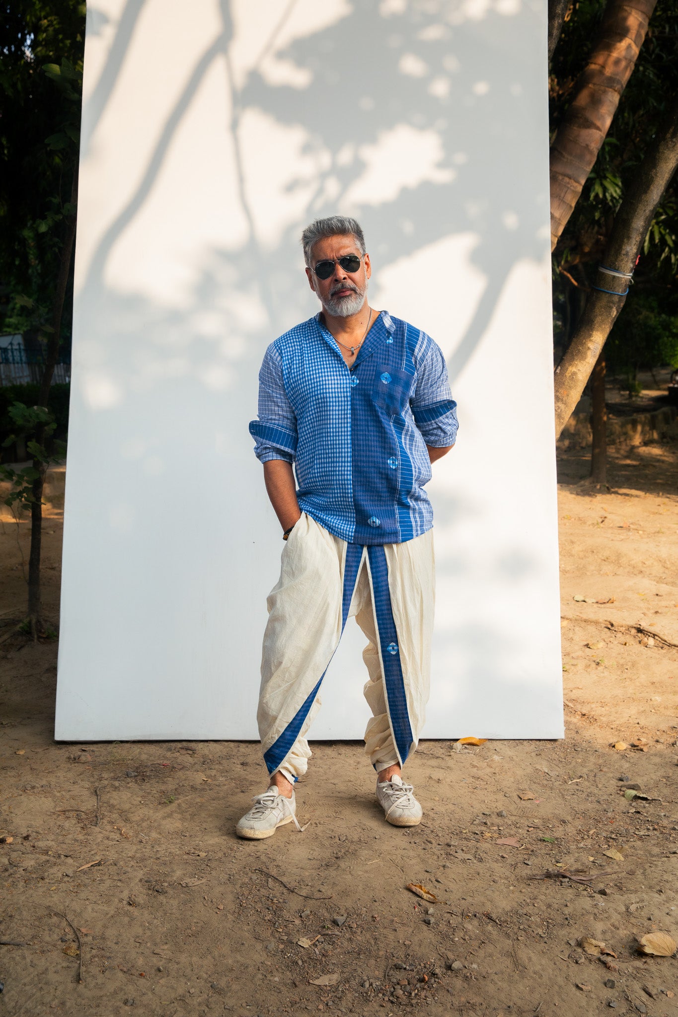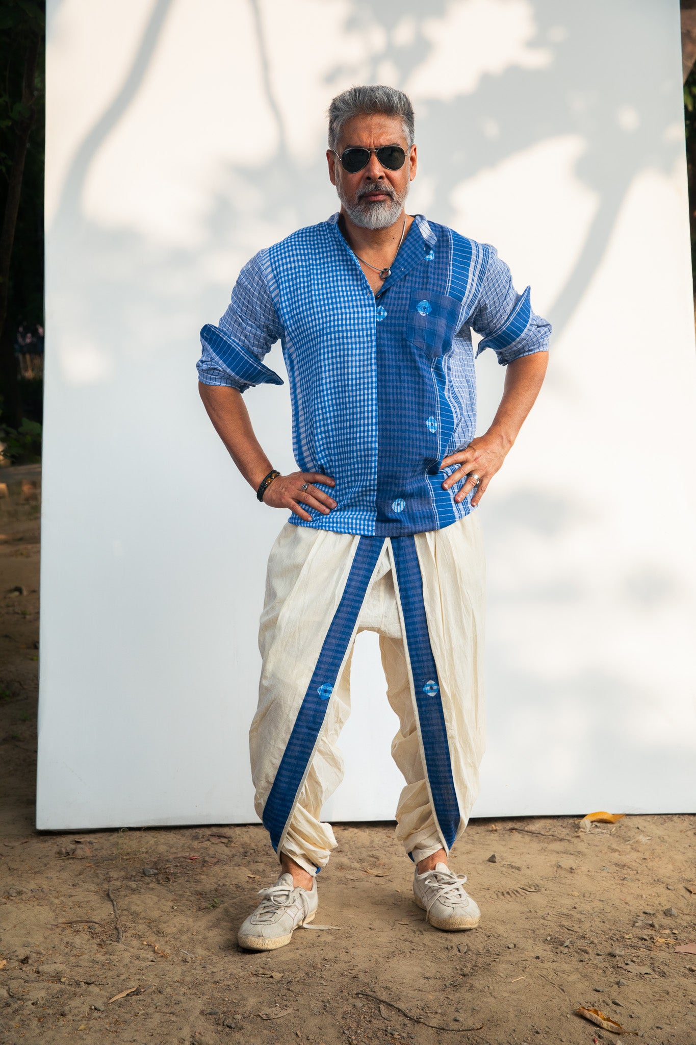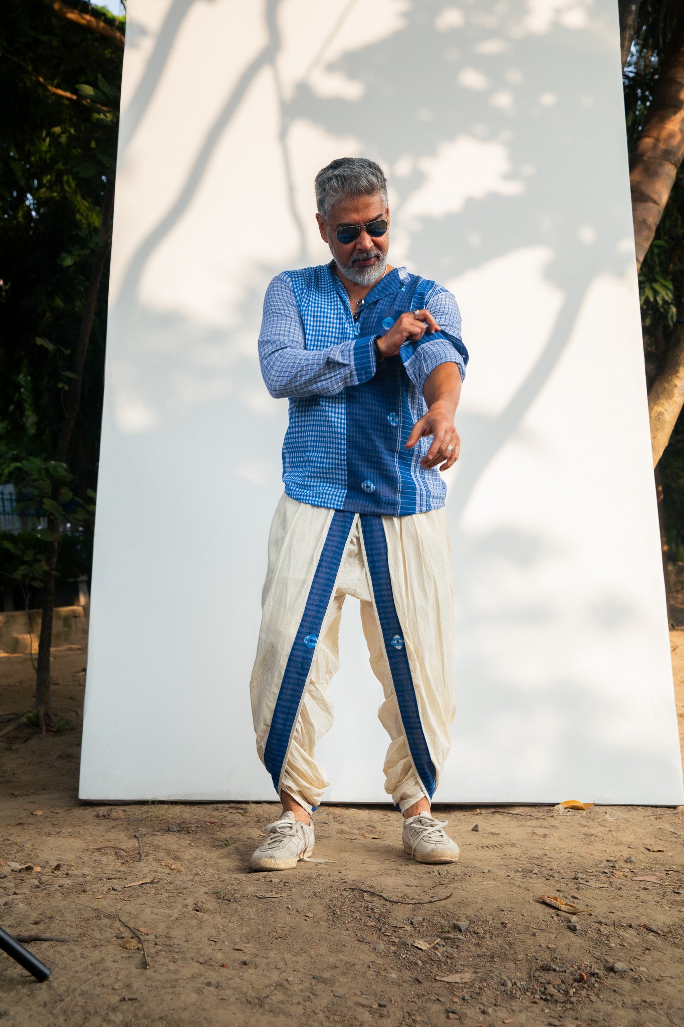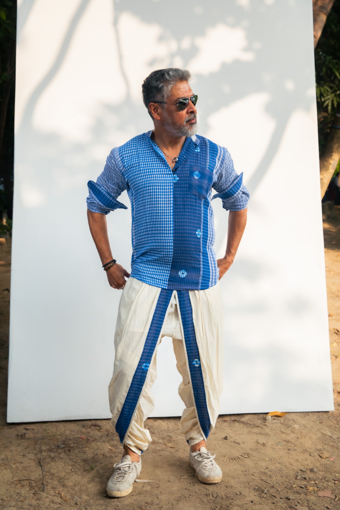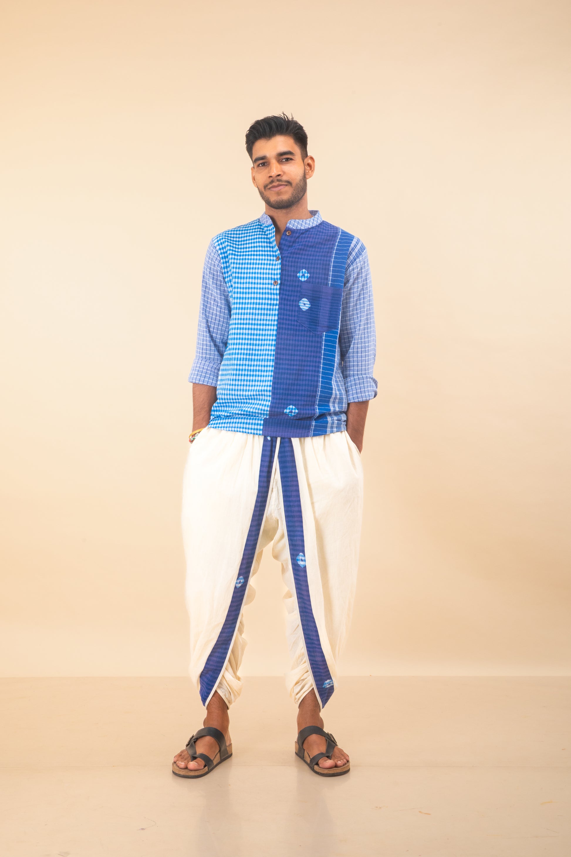Experience the ultimate comfort and style with The Gershwin White Set. This elegant bandhni dhoti kurta set features a convenient pocket and is made with breathable, lightweight fabric. Perfect for any occasion, it's a must-have addition to your wardrobe.