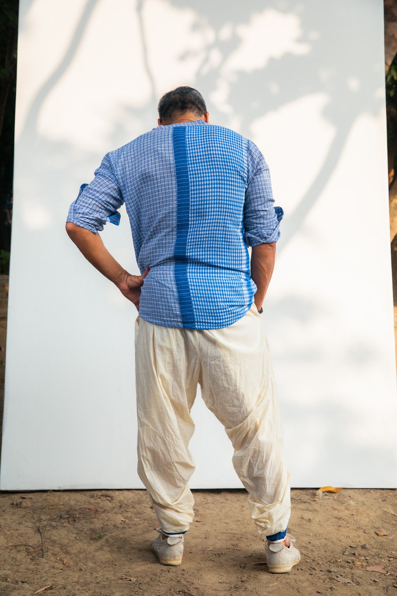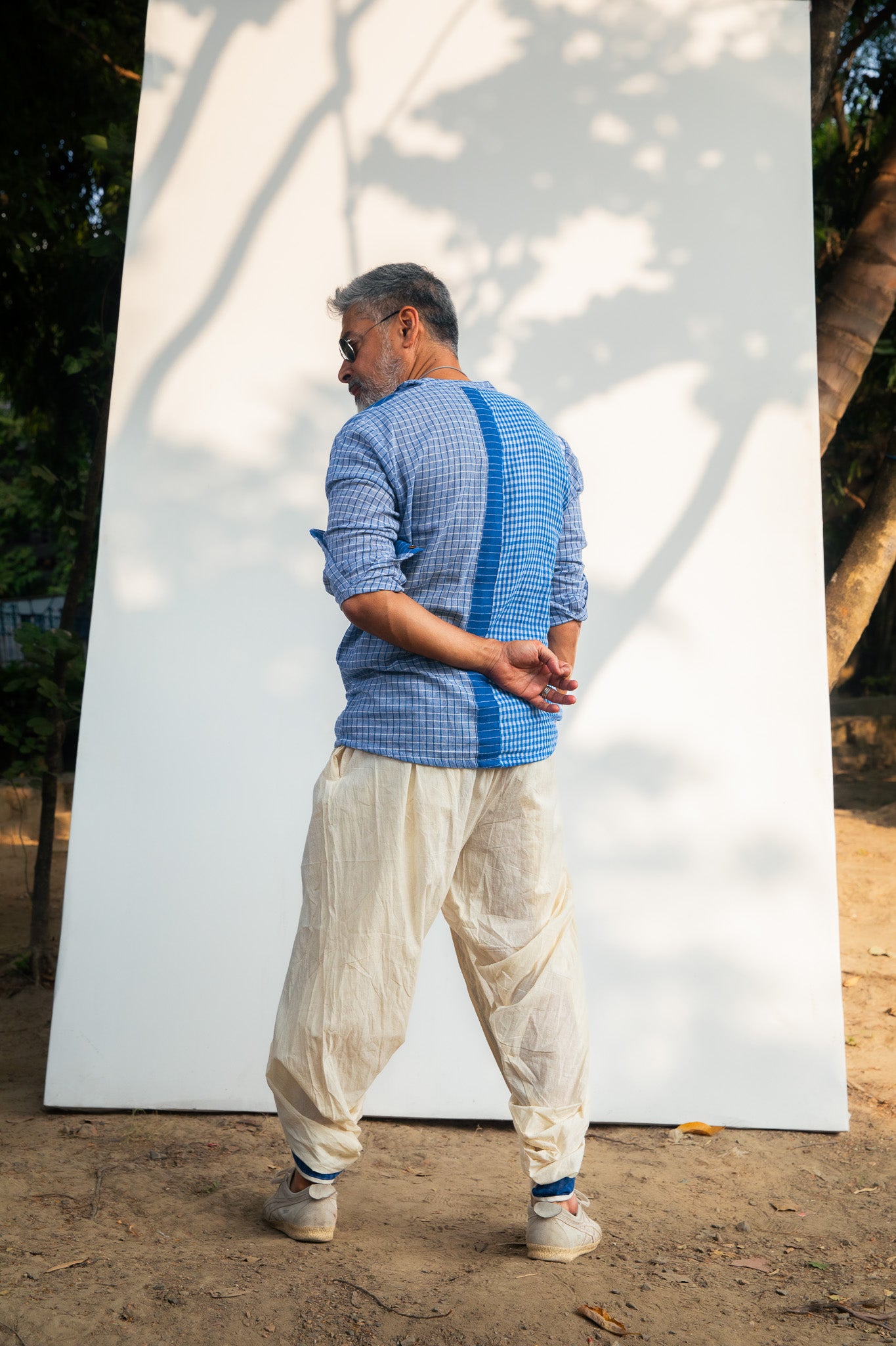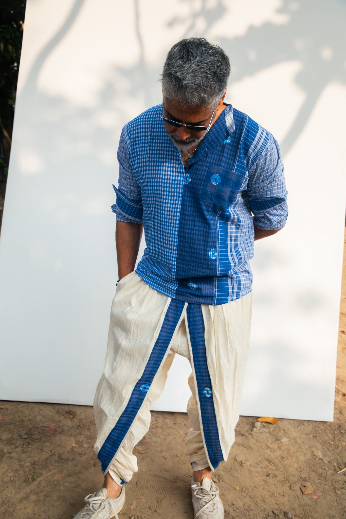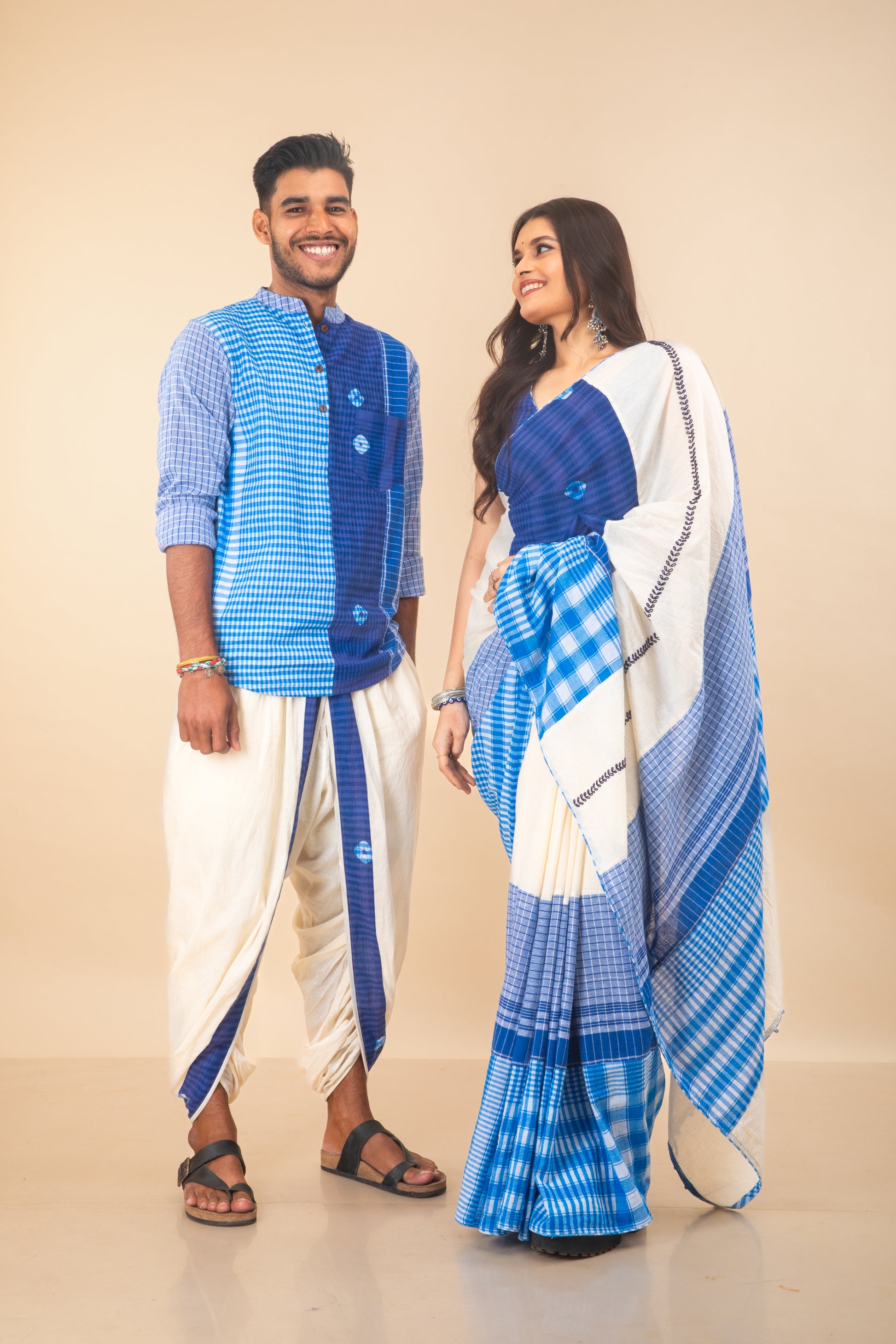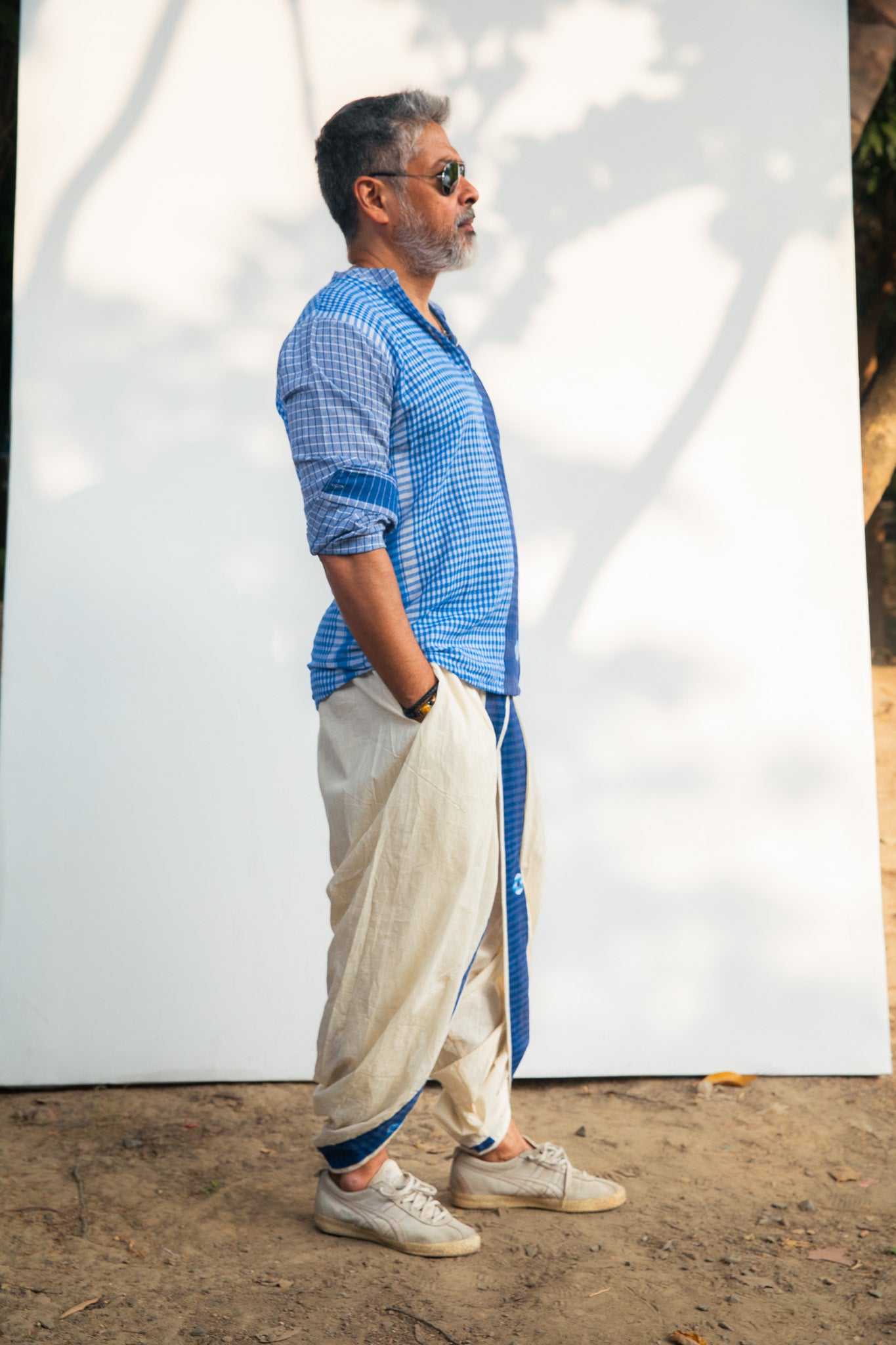 Experience the ultimate comfort and style with The Gershwin White Set. This elegant bandhni dhoti kurta set features a convenient pocket and is made with breathable, lightweight fabric. Perfect for any occasion, it's a must-have addition to your wardrobe.
