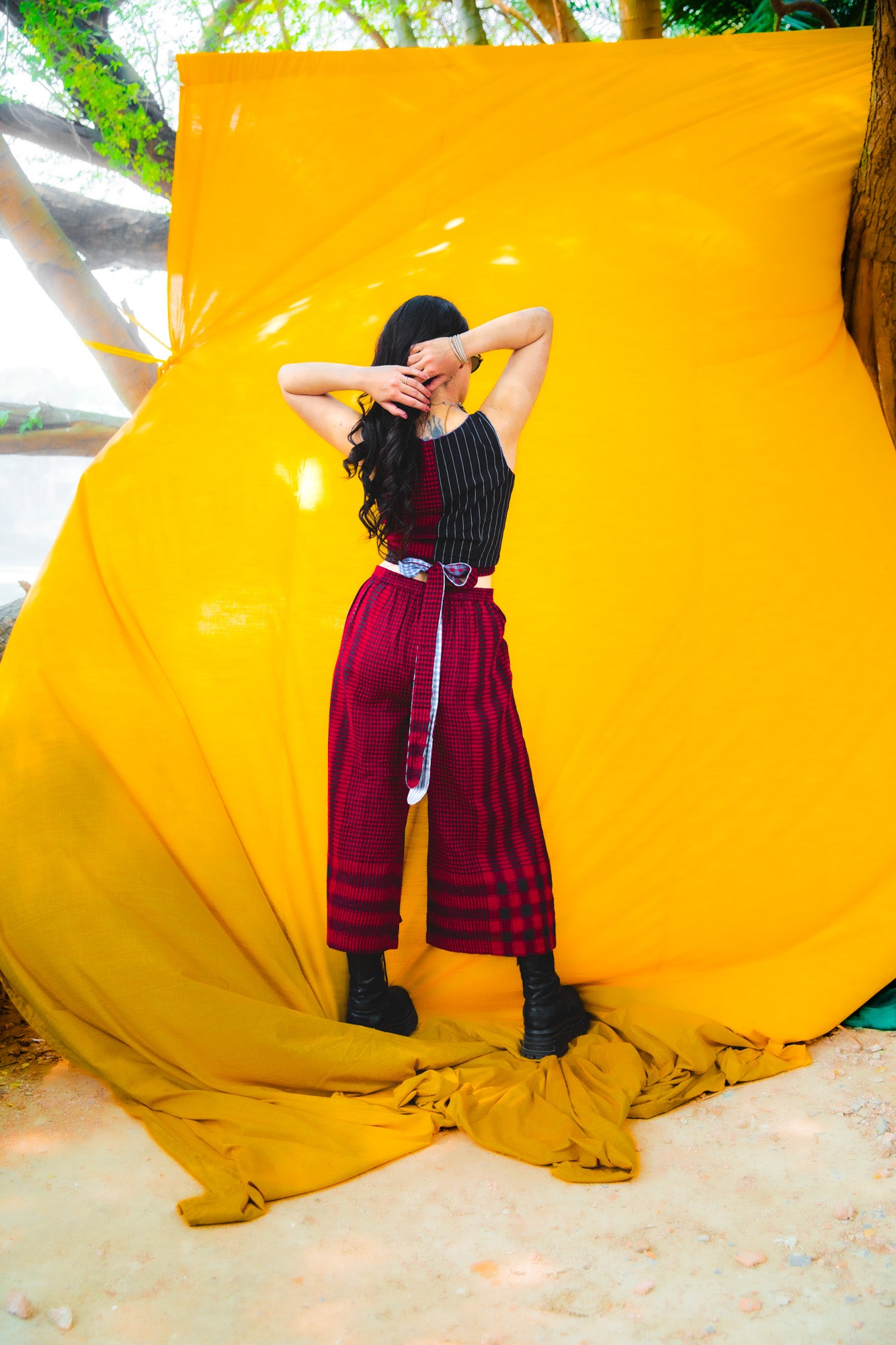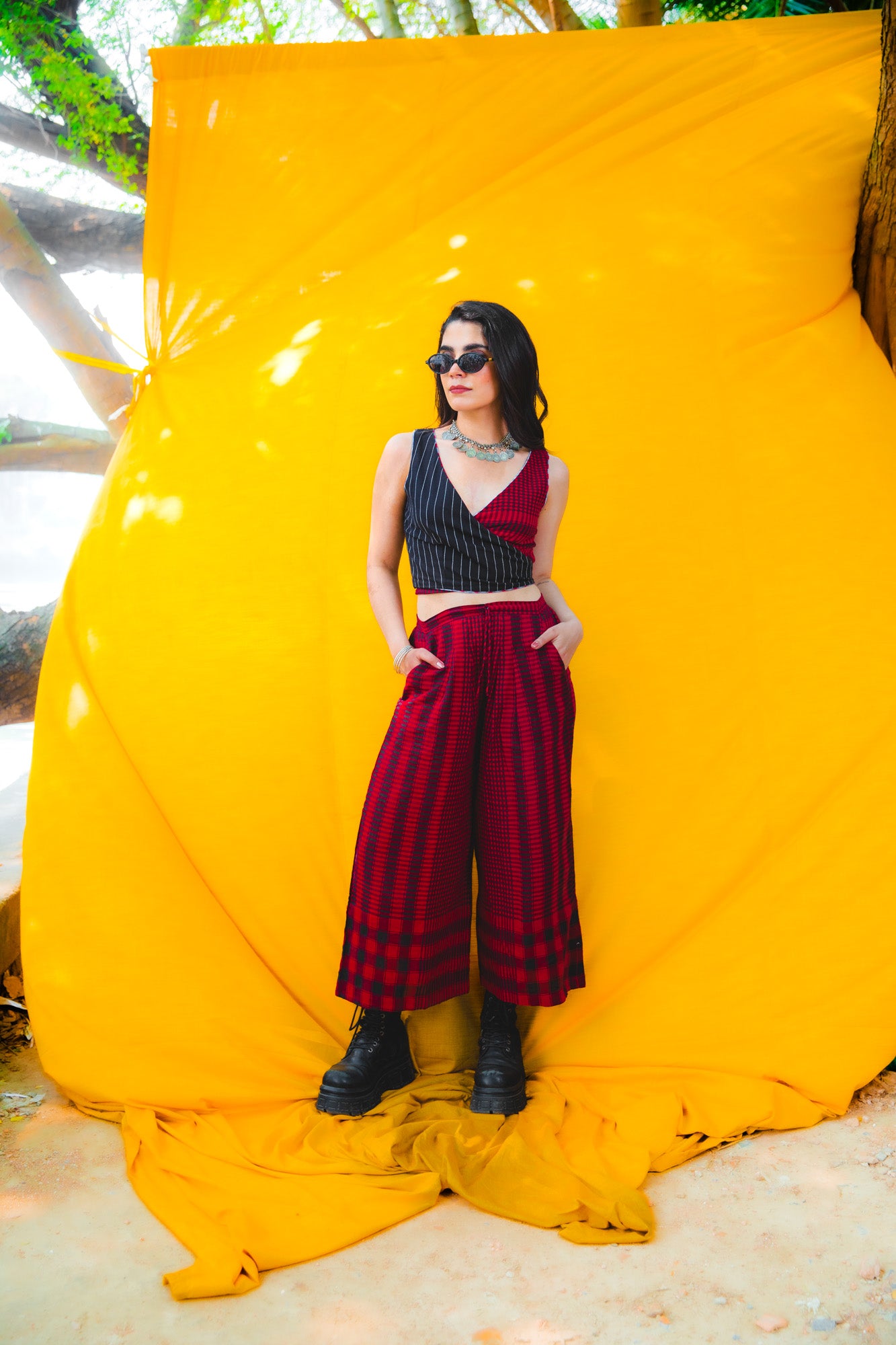 The Ladybird Bustier Set combines versatile styling with everyday comfort. This two-piece collection features a wrap-around bustier with adjustable fit and reversible design—wear the V-neckline at the front for classic elegance or flip it to the back for an unexpected twist. The bustier transitions seamlessly from layering piece to standalone blouse. Paired with comfortable cotton pants featuring an elastic waistband, drawstring adjustment, and functional side pockets, this set delivers multiple outfit possibilities from a single purchase. Crafted entirely from 100% cotton for breathability and ease of care.
